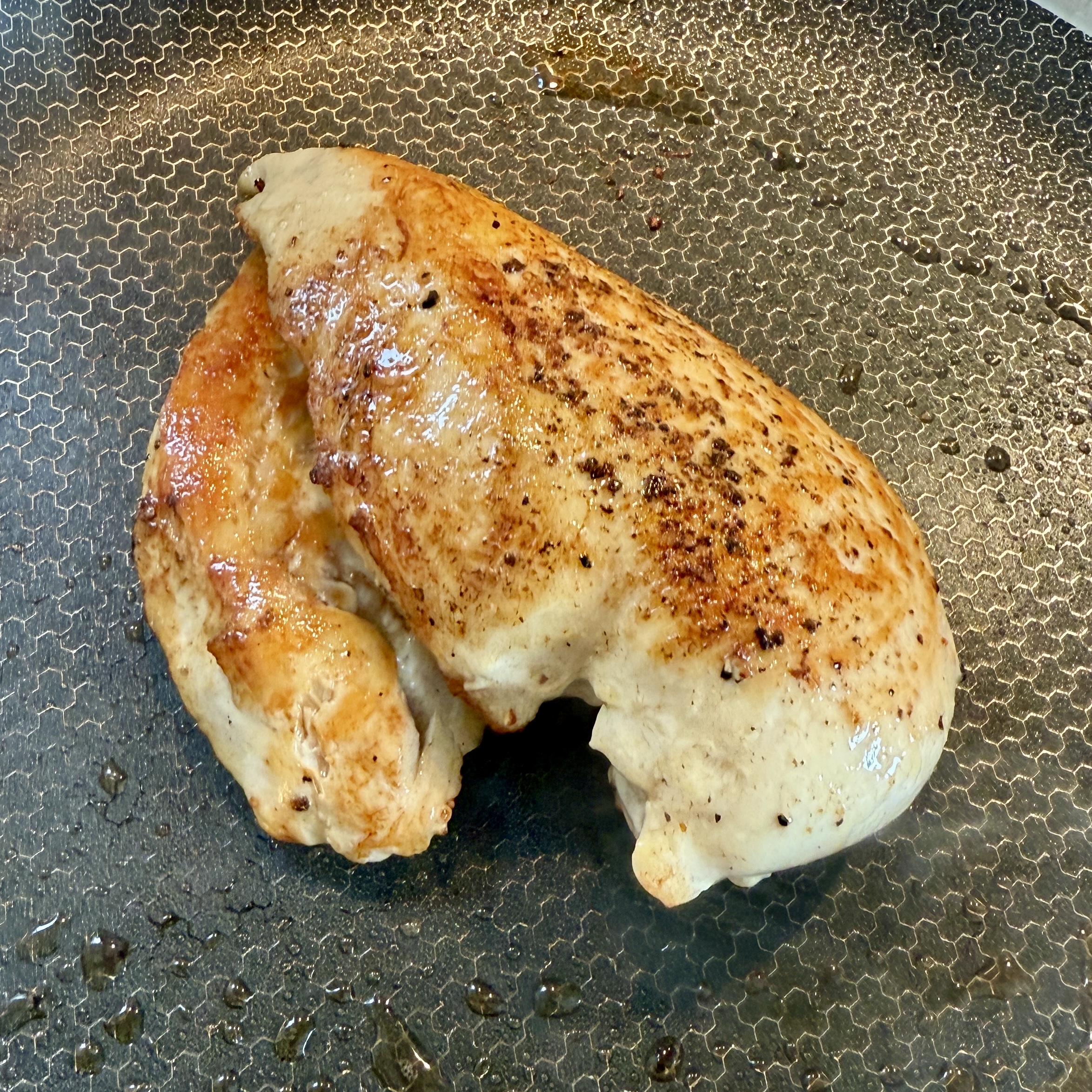 - Hähnchen anbraten 🍗: In Sonnenblumenöl scharf anbraten, dann auf mittlerer Hitze 10 Min. pro Seite garen.