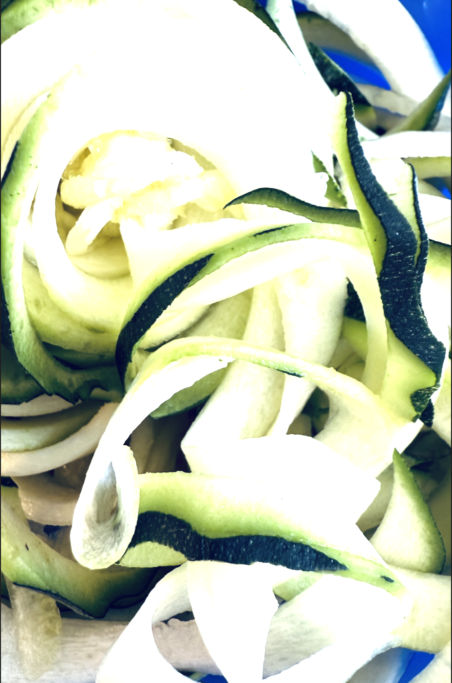 - 2 mittelgroße Zucchini, in Spiralen oder breite Streifen geschnitten