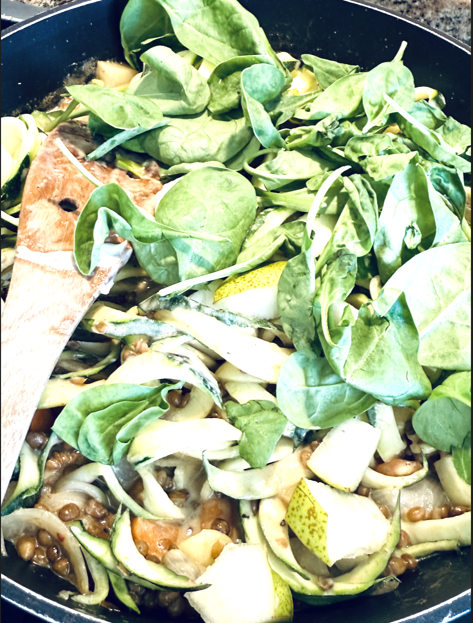 Diese Zucchini-Linsen-Birnen-Pfanne ist ein echtes Wohlfühlgericht – cremig, frisch, sättigend und dabei leicht verdaulich. Sie vereint saisonale Zutaten mit nussiger Tiefe und exotischer Kokosnote. Ideal für Dein One-Meal-a-Day, Detox-Phasen oder einfach als köstliches, gesundes Mittagessen.